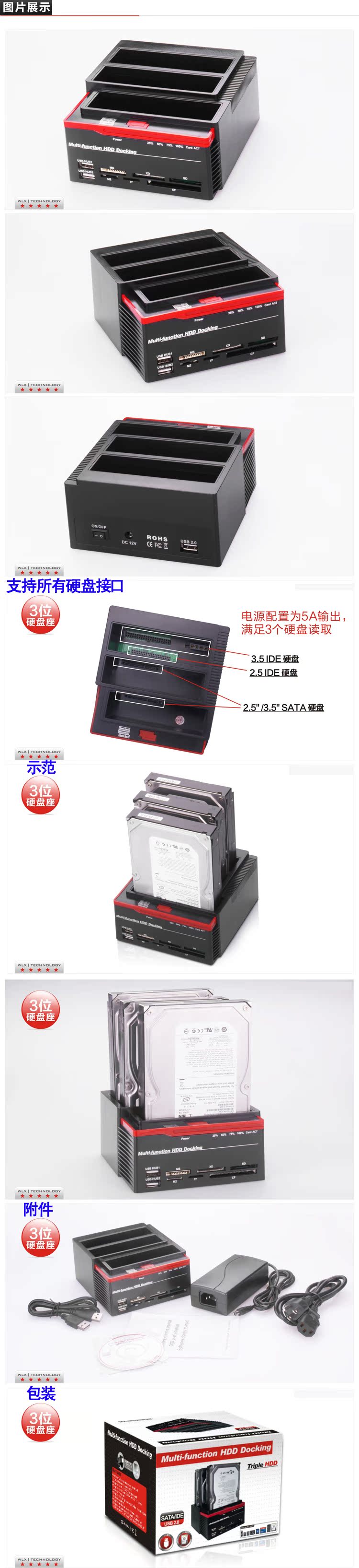 [网络产品] 3.5 2.5寸多功能硬盘座 IDE+2个SATA 3个位/读卡器/USB/5A电源|自动提醒阅读字号: