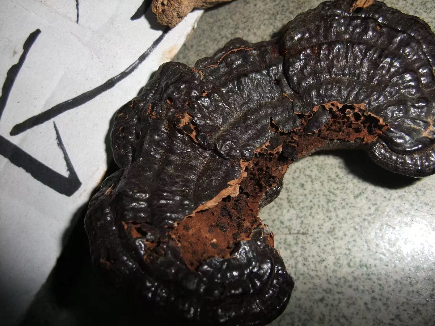 特征:皮壳黑色,有漆样光泽;菌肉锈褐色。菌柄长17~23cm