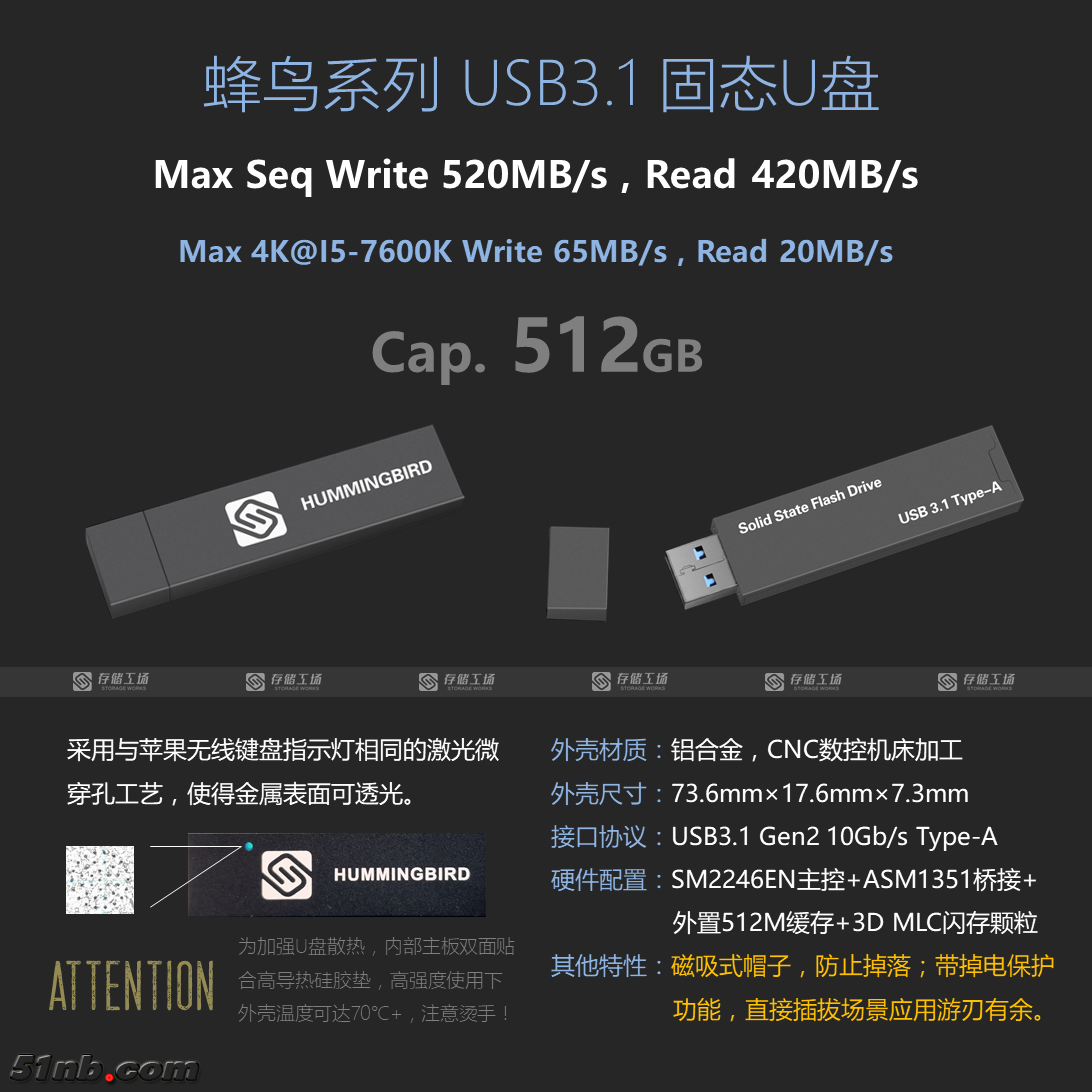 【存储工场】蜂鸟系列USB3.1高端固态U盘正式发售,51NB网友春节期间购买有优惠|自动提醒阅读字号: