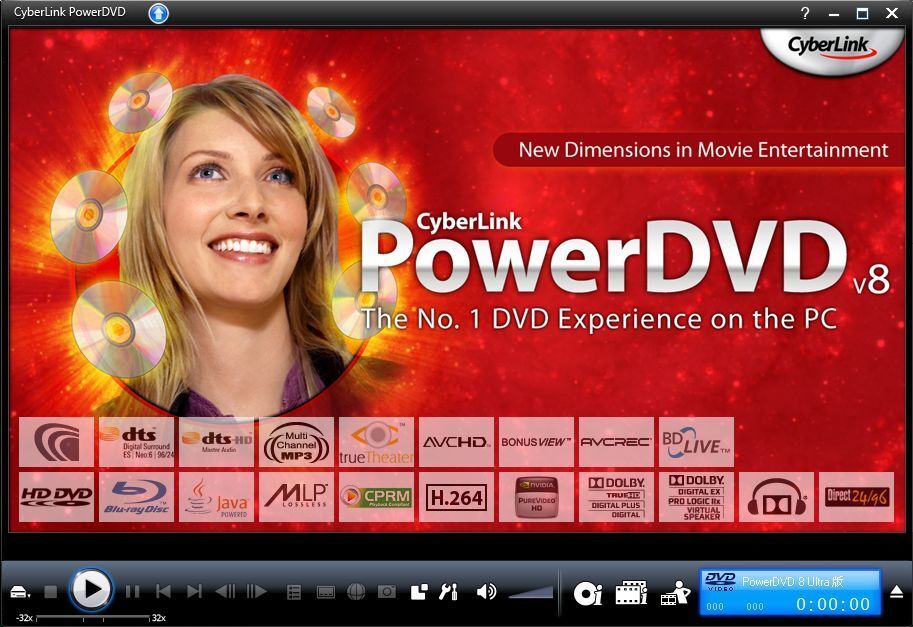 两大功能齐全: 打开播放软件(电脑截图) PowerDVD 8 极致版